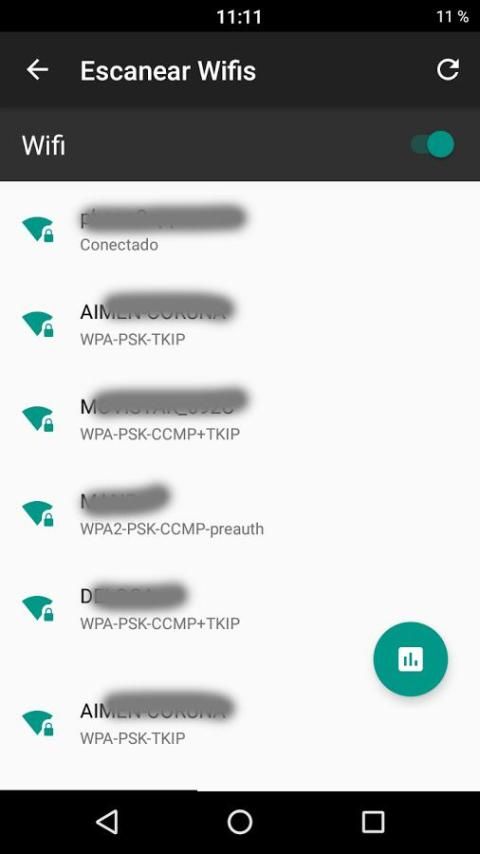 لاستخدام واي فاي كلمة المرور والمراجع، هو بسيط، فقط اضغط على زر "مسح Wifis" وإذا لم تكن قد تفعيلها، وتفعيل wifis بحيث تطبيق يمكن التعرف ويبدأ بالتدقيق عليهم.