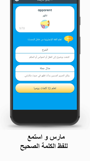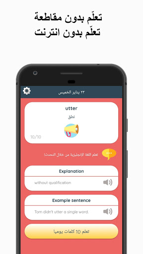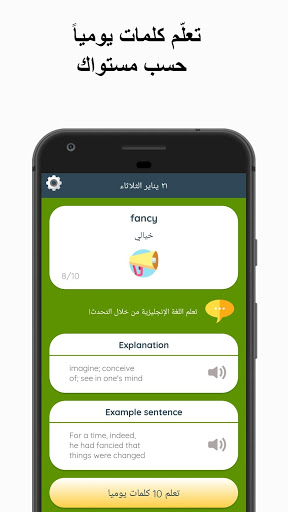 في كل يوم يرسل لك Wordly كلمة باللغة الإنجليزية لتتعلمها ، ثم يقوم مساعد Wordly بتذكيرك بالكلمة الإنجليزية بشكل منتظم حتى تقوم بحفظها. من خلال البطاقات التعليمية يمكنك رؤية معنى وشرح الكلمة و يمكنك أيضا الاستماع إلى النطق.