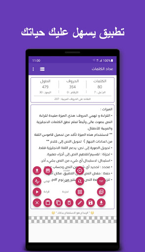 • حساب عدد الكلمات – الحروف – طول النص من خارج التطبيق بدون فتح التطبيق وبدون خسارة النص الاصلي. من خلال مشاركة النص مع التطبيق.