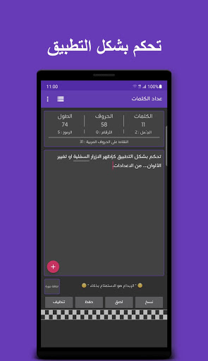 • الكتاب: سواء كنت كاتب قصص وروايات أوكاتب تقارير وسائل. تطبيقنا راح يساعدك في تحديد كم كلمة او طول الرسالة اللي كتبتها.