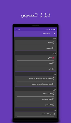*ملاحظة: لإستخدام هذه الميزتين, الرجاء التأكد من تحميل القاموس الخاص باللغة من خلال البحث عن "تحويل النص الى كلام" في اعدادات الجهاز.وتأكد من تغيير لغة التطبيق الى اللغة المراد قرائتها من اعدادات التطبيق.