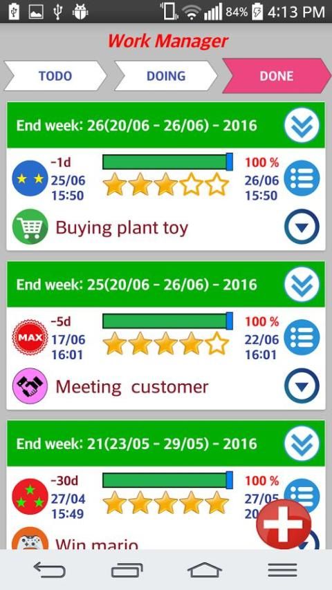 هل تعلم شيئا عن "كانبان الشخصية" نموذج مدير العمل؟ هذا هو نموذج شعبية جدا وفعالة ولكن سوف تضيع الكثير من الوقت للقيام بك "الشخصية كانبان المجلس". وهذا التطبيق يساعدك على القيام بذلك في مذكرة الموسيقية. يمكنك البحث عن "كانبان الشخصية" هنا: https://www.youtube.com/watch؟v=N3BoLRVXoI0