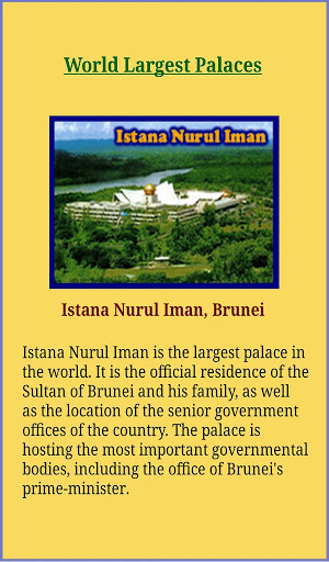 القصر هو إقامة كبيرة، خاصة الإقامة الملكية أو موطن رئيس الدولة أو بعض الشخصيات الرفيعة المستوى الرفيعة المستوى، وكذلك منازل الملوك والأباطرة. هذه القصور الرائعة هي من بين أكثر المعالم الشهيرة في العالم. من الصعب فعل تحديد أكبر القصور في العالم أكبر عدد ممكن من البلدان معايير مختلفة للمطالبة بقصورها هي الأكبر. في الواقع، حتى تعريف القصر نفسه غير غامض للغاية. تشير بعض المصادر إلى أنه يجب أن يكون هناك قصر كان من المقصود مرة أخرى للاستخدام كإقامة رويال، بينما يقول تعريف آخر يستخدم في كثير من الأحيان قصر هو الإقامة الرسمية لرئيس الدولة، رئيس الدولة (كملك أو رئيس)، رئيس الأساقفة أو الأسقف. ومع ذلك، على الرغم من هذه الخلافات، هناك رتبة شائعة مقبولة لأكبر قصور في العالم ويمكنك التحقق من ذلك في هذا التطبيق. كانت هذه الآثار المذهلة ذات يوم منازل الملوك والأباطرة، والآن الآن مناطق الجذب السياحي الشعبية. من القصر الملكي بروكسل إلى قصر البرلمان في بوخارست، إليك بعض من أفضل الخلق والأجمل وكذلك أكبر القصور في العالم.
