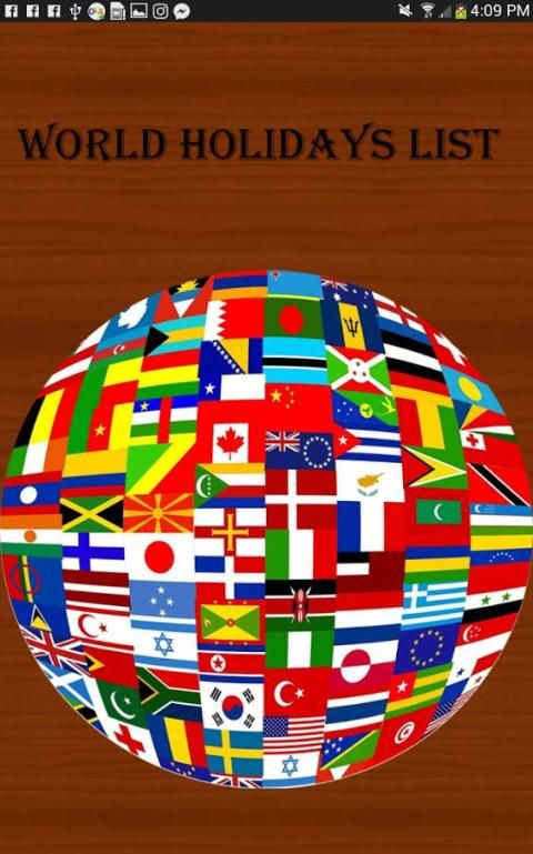 العالم قائمة عطلات هو التطبيق المعلوماتي الذي يتيح لك معرفة حول أكثر الأيام مميزة (الأيام الدولية والأعياد الوطنية والأعياد الدينية ملحوظ، والأعياد الإقليمية) في الشهر من العام 2017. التطبيقات إلى عرض معظم الأعياد الدولية من جميع البلدان الوطني و موجودة في جميع أنحاء العالم.