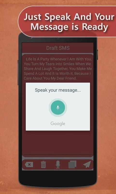 يمكنك الحصول على التطبيق مجانا هنا يمكنك إرسال رسائل إلى كتبه صوت. أنت لا تحتاج إلى كتابة النص لإرسال الرسائل النصية القصيرة.
