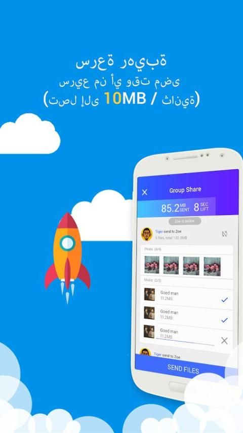 يمكن للأصدقاء نقل الملفات إلى بعضها البعض بنقرة واحدة. من السهل جدا للمشاركة!