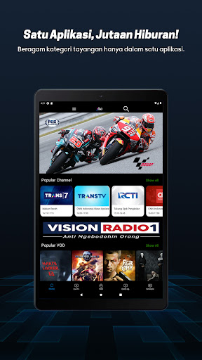 2. الراديو: الاستماع إلى الأخبار والمعلومات تم تحديثه المحدثة في VisionRadio1 - 3.Catch Up: لا حاجة إلى تفويت برنامجك المفضل. يمكنك مشاهدة البرامج التلفزيونية التي تم بثها قبل 7 أيام.