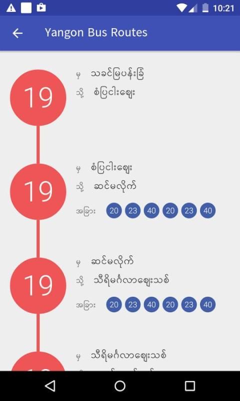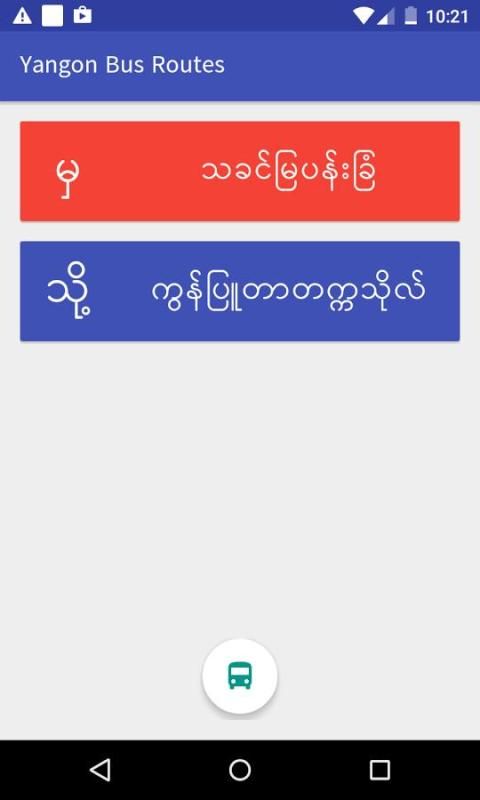 يانجون حافلة طرق التطبيق يمكن أن تساعدك لنظام الحافلات الجديد في يانجون. ما عليك سوى اختيار من وإلى، سيتم احتسابها وإظهار الدليل. تسمح لك للبحث في محطة للحافلات التي كتبها Zawgyi ويونيكود.