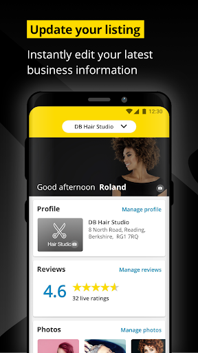 احصل على قائمة الصراخ وإدارة ملف تعريف عملك مجانا مع تطبيق Yell for Business.عرض والرد على مراجعات العملاء، تحديث معلومات عملك، وعرض التحليلات، وتحميل الصور وعملاء الرسائل، كل ذلك أثناء التنقل.
