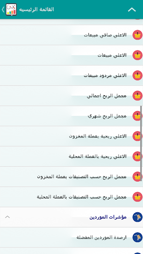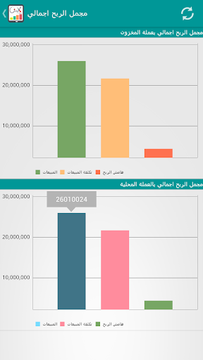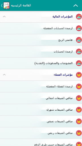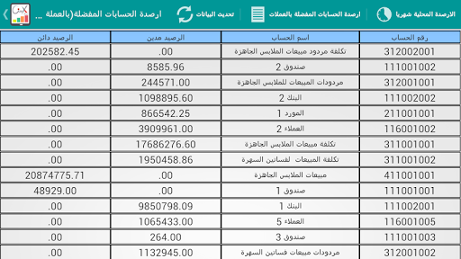 الحسابات :صافي الارصدة (بالعملة المحلية) مع وجود امكانية لاستعراض الارصدة بالعملات والارصدة الشهرية لكل نوع