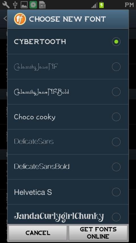 ويظهر تطبيق الخطوط التي تنطبق على جهازك بشكل واضح بحيث يمكنك اختيار الخط الذي تريد وتطبيقها.