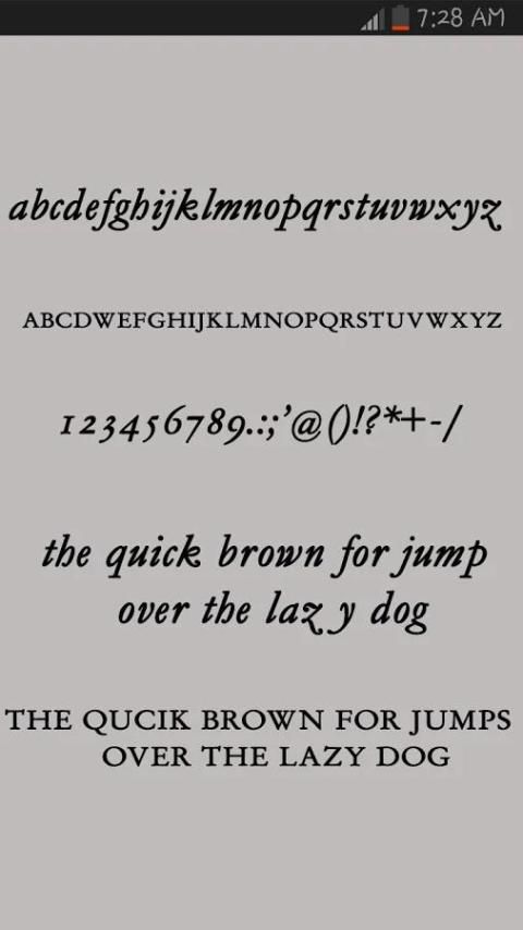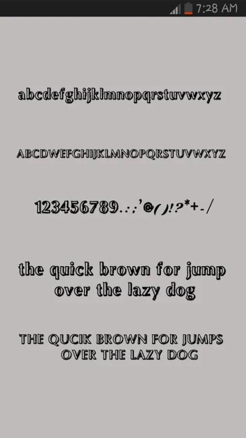 لا يرتبط هذا التطبيق الروبوت مع FlipFont أو مادة منضدة التصوير شركة لا تزال جميع وظائف والعلامات التجارية وحقوق التأليف والنشر ملكا لأصحابها.