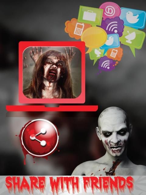 Zombify - تغيير في غيبوبة يوفر لك خيار مشاركة الصور الخاصة بك في الفيسبوك، تويتر، ال WhatsApp ومواقع وسائل الاعلام الاجتماعية الأخرى.