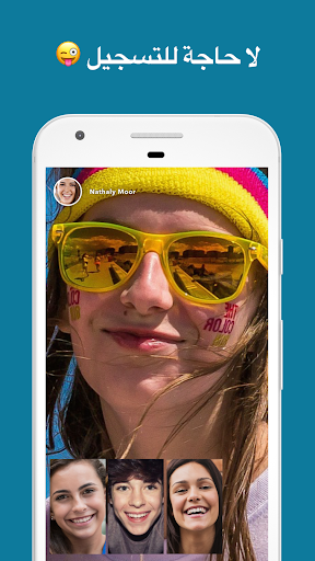 دردشة مباشرة مع ما يصل إلى 12 صديق في الوقت نفسه. لا حاجة للتسجيل. لن تحتاج سوى إلى غرفة دردشة لتبدأ مكالمة الفيديو. أنشئ غرفة دردشتك الخاصة وادعُ أصدقاءك لينضموا إليها. إذا كنت تعرف اسم غرفة دردشة قائمة يجتمع فيها أصدقاؤك، ما عليك سوى البحث عنها للانضمام إليهم. يمكنك قفل غرفتك لتصبح غرفة دردشة خاصة. اقضِ وقتك مع أصدقائك في أي وقت عبر هذا التطبيق الرائع لمكالمات الفيديو الجماعية. مكالمات الفيديو الجماعية غاية في المتعة وبديل ممتاز للتواصل الشخصي