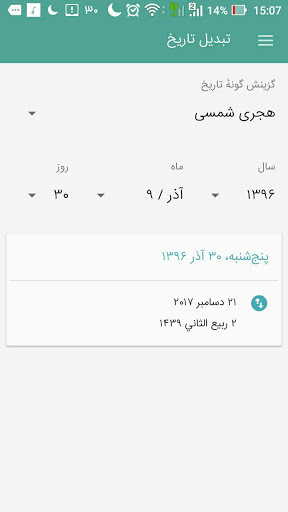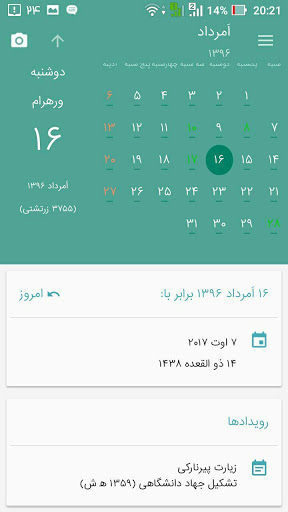 تطبيق "الجدول الزمني الفارسي" هو التقويم لجميع الإيرانيين الذين يمثلون مزيجا من التقويم الإيراني القديم والتقويم الحالي.