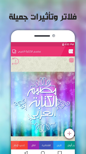 صمم كلماتك واكتب على الصور من هاتفك بطريقة أنيقة واحترافية وبسهولة وتحكم كامل... مع مصمم الكتابة العربي الكتابة على الصور سوف تكون أكثر من مجرد كتابة وسوف تمنحك شعور المصمم وأنت ترسم كلماتك على الصور بسهولة واتقان كالمحترفين. مصمم الكتابة العربي هو أفضل برنامج للكتابة على الصور والتصميم للغة العربية بميزات متكاملة وسهولة في التعامل ومتعة في الاستخدام...