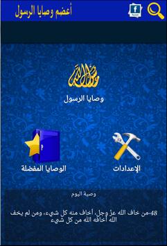 يحتوي تطبيق "أعضم وصايا الرسول" على 3 قائمات :