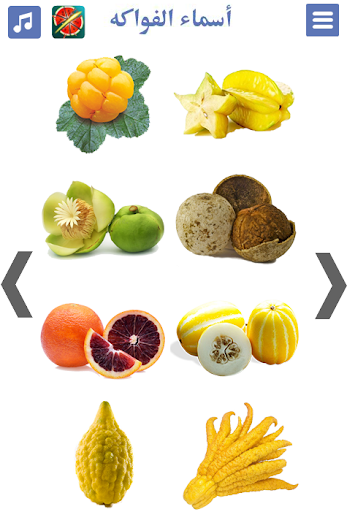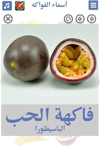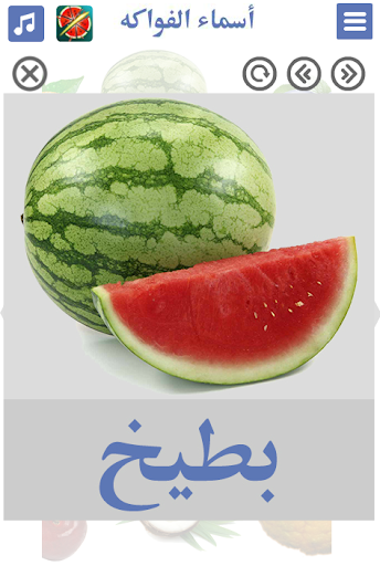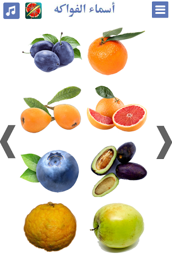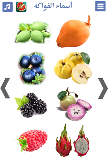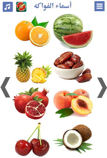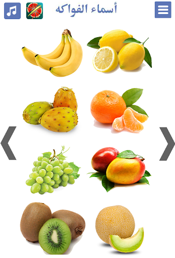👈 التطبيق ينطق اسم كل فاكهة من الفواكه المعروضة و تكون اسماء الفواكه بالعربي مما يدعم تعليم الفواكه.