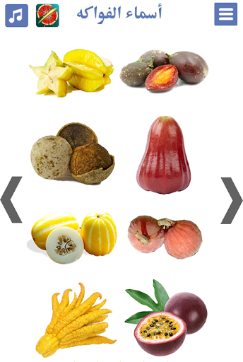 هناك صور فواكه من مختلف انواع الفاكهة المعروفة و أسماء فواكه غريبة. صور الفواكه تعطي شعور بالراحة النفسية 😊 ولذلك من الجميل أن نتصفح مثل هذا التطبيق الذي يقدم قائمة الفواكه بالصور. توجد هنا معظم انواع الفواكه واسمائها.