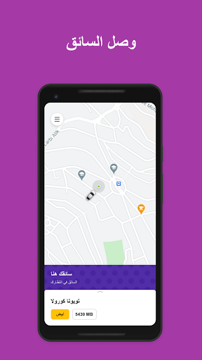 عند وصول السائق الى موقعك, يصلك عبر التطبيق اشعار بالوصول. داخل السيارة يمكنك متابعة تفاصيل الرحلة.