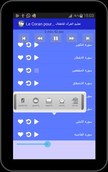 لتعليم اطفالك القرآن بطريقة فعالة وسهلة من خلال الاستماع الى المقرئ العفاسي وترديد الاطفال من وراءه، يحتوي التطبيق على جزء عم وفيه السور التالية :