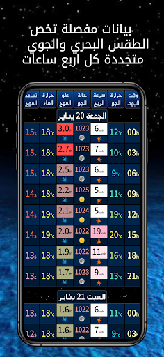 بيانات المد و الجزر للايام الثلاثين المقبلة
