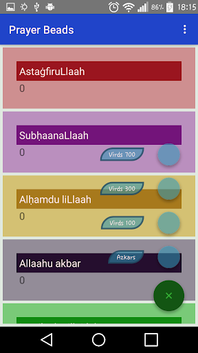 حبات الصلاة - هو تطبيق يسمح لك بتذكر الله والبارك رسوله (صلى الله عليهاء) أينما كنت: جالسا في المنزل أو في العمل أو في المدرسة أو في الجامعةفي الأماكن العامة، حيث أنه من غير المريح قراءة DHIKR والقيام باللبرائيات مع الوردية العادية.