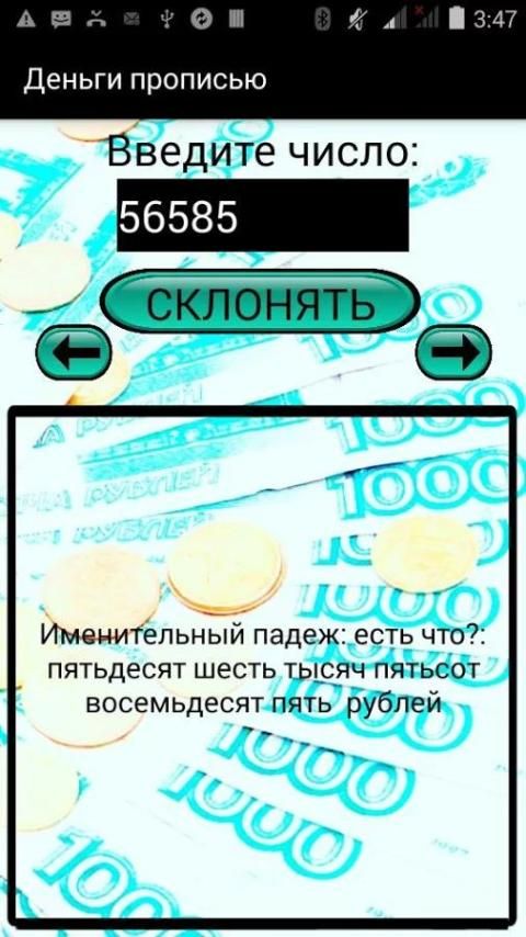 The program will help you to decline on cases and provide in writing entered amount of money in rubles. It is very useful for all those who had and always will have to write the amount of money in the capital form.