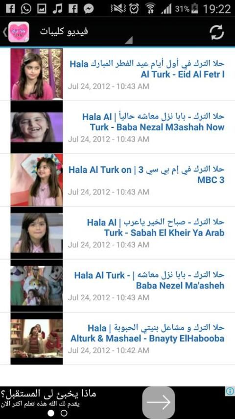 التطبيق يحتوي علي جميع اغاني الفنانة الصفيرة حلا ترك بدون انترنيت و فيديو كليبات رنات الهاتف و اغاني اطفال بدون تشغيل انترنيت