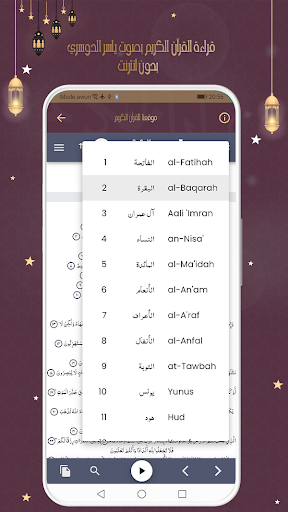 من خلال الضغط على زر (السورة التالية) و(السورة السابقة) يمكنك الاستماع للسور السابقة للسورة التي تستمع إليها وكذلك السور التالية، كما يظهر لك البرنامج مدة كل سورة حتى تكون على علم بهذا.