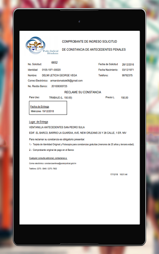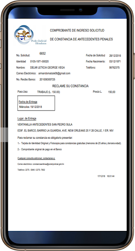 هذا التطبيق هو مساعدة كبيرة لجميع هندوراس الذين يعيشون في البلاد وطلب سجل التاريخ الشخصي الذي يقدمه مكتب القضاء في هندوراس.