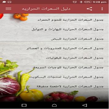 دليل السعرات الحرارية يساعدك على الحصول على معلومات الطاقة (الحريرات) الموجودة في عدد كبير من الأغذية الشائعة بطريقة سهلة وسريعة كما يمكنك من معرفة السعرات التي يحتاجها جسمك يومياً ومتابعة السعرات التي تكتسبها يومياً .
