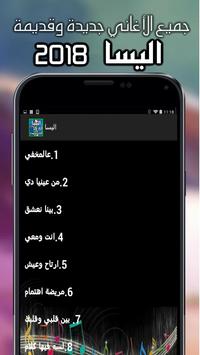 بالاضافة الى هذا الالبوم يضم هذا التطبيق جميع اغاني اليسا وهذه قائمة لبعض من اغاني اليسا التي يضمها هذا التطبيق