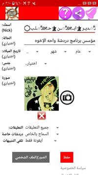 دردشة واحه الإخوه من افضل البرامج للتواصل والتعارف دردشة مجانية تعمل بدون ايميل وبدون رقم هاتف ولا يوجد داخلها اي اعلانات مزعجة تعرف ع اصدقاء بالقرب منك وتحدث بداخل الغرف السعودية اليمن عمان المغرب العربي سوريا مصر الاردن العراق لخ.....انشر صورك عبروفيلك واكسب الاعجابات والتعاليق من قبل اصدقائك دردشة واحه الإخوه ترحب بكم حملها الآن تطبيق مجاني وفائق الروعة هذا التطبيق صمم للتسلية والمرح اهلا بكم