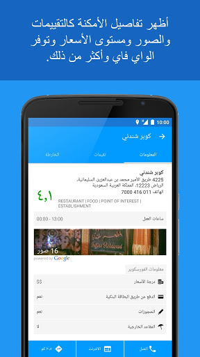 4. الاطلاع على تقييمات الزبائن، وأرقام الهاتف، وساعات العمل، ودرجة الأسعار من حيث الغلاء، وغيره الكثير.