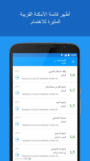 : للحصول على معلومات دقيقة عن المواقع، يفضل تشغيل التطبيق خارج الأماكن المغلقة، تحت السماء، وتفعيل اعدادات ال GPS. إن مصدر كل المعلومات عن الأماكن هو Google Places.