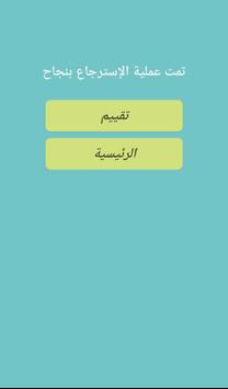 تطبيق استعادة الملفات بعد الحذف تطبيق جديد يمكنك من استعادة الملفات إلى هاتفك بكل سهولة هدا التطبيق لن تجد متله يساعدك على استرجاع ملفاتك المحذوفة من قبل إلى هاتفك في اقل من 5 دقائق و دون عمل أي مجهود مميزات هدا التطبيق هي سهولة استعماله في استرجاع صورك أو استعادتها إلى هاتفك أي إذا كانت لديك ذكريات تريد استرجعها إلى هاتفك بكل بساطة .