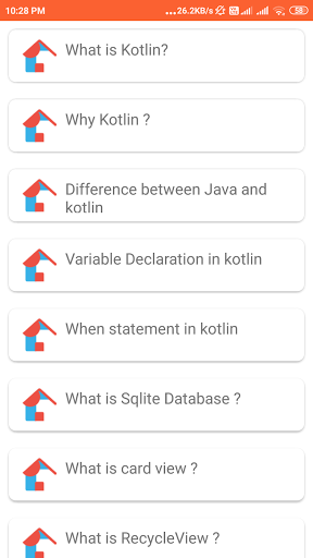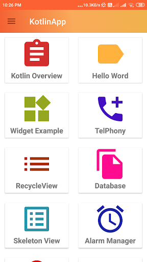 • في هذا التطبيق يحتوي على نوع مختلف من المثال باستخدام لغة Kotlin.
