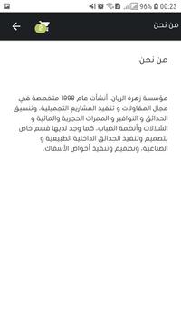 مؤسسة زهرة الريان، أنشأت عام 1998 متخصصة في مجال المقاولات و تنفيذ المشاريع التجميلية، وتنسيق الحدائق و النوافير و الممرات الحجرية والمائية و الشلالات وأنظمة الضباب، كما وجد لديها قسم خاص بتصميم وتنفيذ الحدائق الداخلية الطبيعية و الصناعية، وتصميم وتنفيذ أحواض الأسماك.