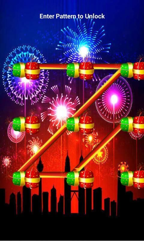 Fireworks Pattern Lock Screen for your mobile especially for Happy Diwali & New Year. You have an option chose different types of pattern styles & Fireworks background Themes.