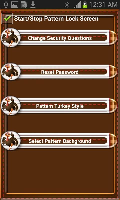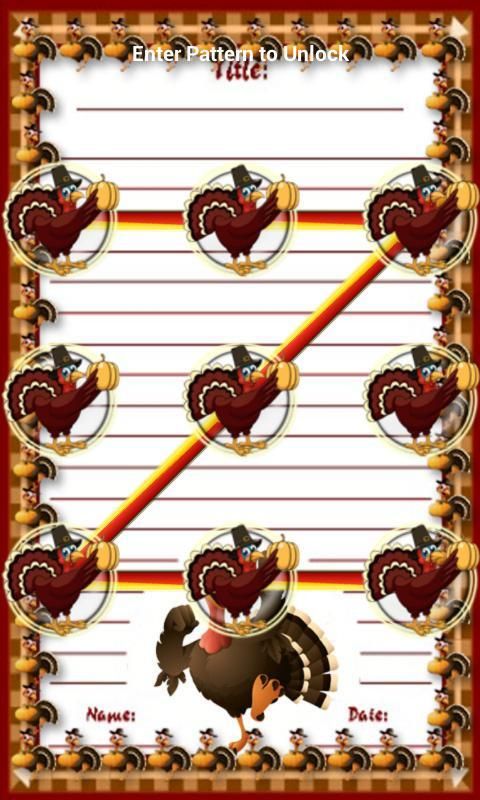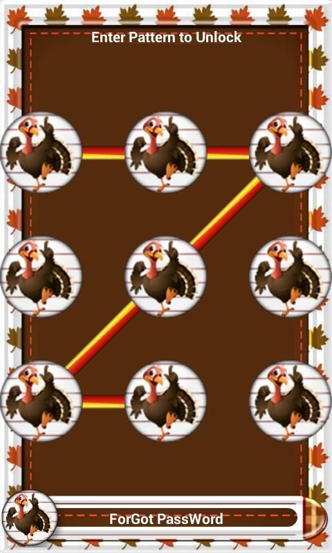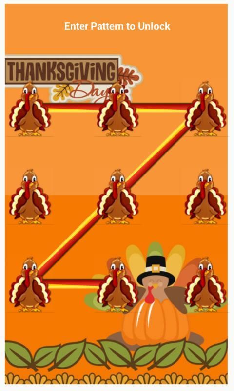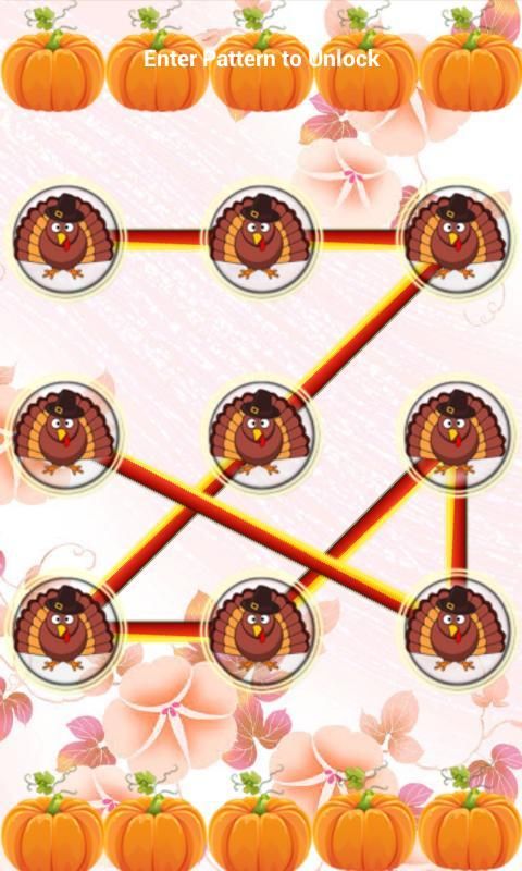 Thanks Giving Day Theme Pattern Mobile Lock Screen for This Thanks Giving Festival. Option to enable disable pattern mobile lock screen, Different types pattern Turkey bird style & background themes.