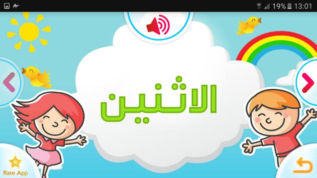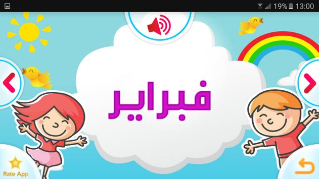 - أيام الأسبوع و شهور السنة بالصوت و الصورة دون الحاجة إلى الانترنت بعد التحميل
