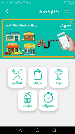 أسهل هو تطبيق إلكتروني متخصص في البيع والتسوق من خلال الإنترنت . سهل يستهدف احتياجات العميل الأساسية التي يحتاج إليها كل يوم. من سوبر ماركت ومطاعم وأدوية , تطبيق أسهل يتعاقد مع أفضل الموردين والبراندات في كل منطقة لكي يضمن لك السهولة والتنوع في اختيار طلباتك من أماكن مختلفة. مع توفير خدمة التوصيل في أسرع وقت في كل أنحاء المدن التى نعمل بها .تطبيق أسهل يقوم بعرض المنتجات بطريقة سهلة وبسيطة لكى نوفر عليك الوقت والمجهود في شراء طلباتك. تطبيق أسهل يعمل على مدار 24 ساعة لكي يكون بجانبك في جميع الأوقات. فهو التطبيق المناسب الذي تستطيع الأعتماد عليه , دلوقتي تقدر تشتري طلباتك من السوبر ماركت وتجيب الدواء اللي انت محتاجه