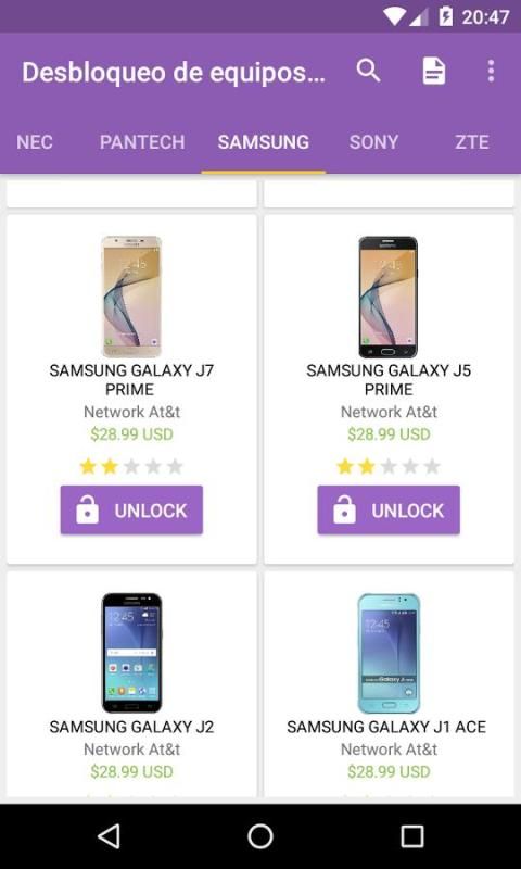 إذا قمت بشراء AT & T الهاتف وتريد استخدام آخر مشغل Unefon كما MOVISTAR واضح. مع هذه الخدمة يمكنك إزالة القفل المؤقت الهاتف للاستخدام مع تفضيل المشغل، ونحن نؤيد الآلاف من العلامات التجارية والنماذج.