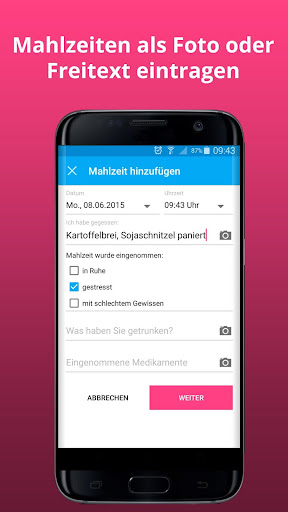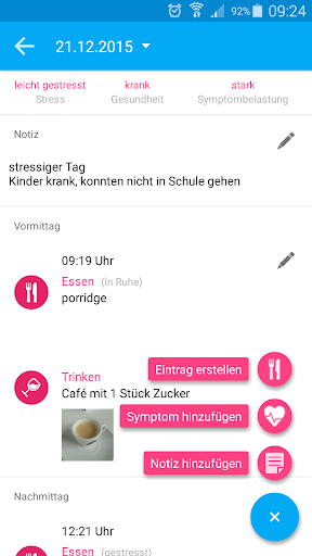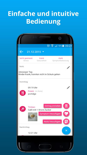 يمكن أيضا استخدام التطبيق في الوقت الحالي بعد التشخيص. لأنه بعد تشخيص التعصب، يجب اختبار الأطعمة المختلفة بشكل فردي. مرة أخرى، يؤدي قيادة مخطط الأعراض أو الناقل الغذائي إلى حد ما.