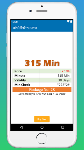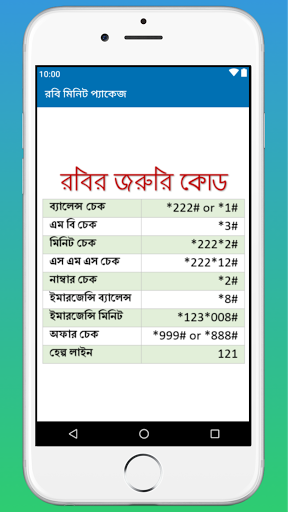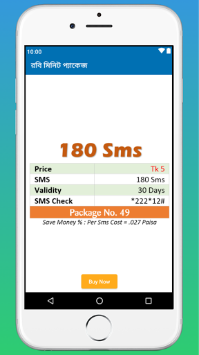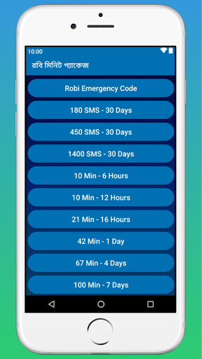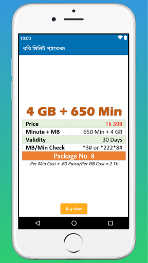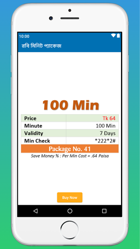 ROBI هو مشغلو محمول رفيع المستوى في بنغلاديش لحجمها الضخم من المستخدمين النشطين. أنها توفر عرض دقائق مختلفة لفترة مختلفة لعملائها. قد يتغير أي عرض دقائق روبي أو انتهت صلاحيته أو إلغاؤه بواسطة ROBI في أي وقت. نحن لسنا مسؤولين عن أي حزم تتغير أو انتهت صلاحيتها من قبل المشغلين ROBI. نحاول دائما نشر معلومات محدثة على التطبيق.