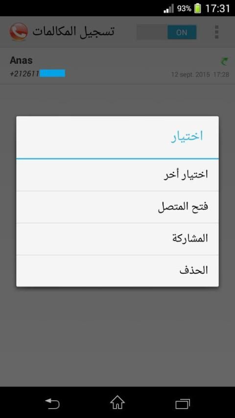 • حذف المكالمات المسجلة