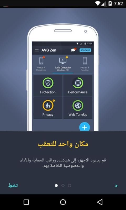 AVG Zen عبارة عن شبكة شخصية آمنة تعمل على أجهزتك، وتتيح لك إضافة أجهزة Android أو أجهزة الكمبيوتر الأخرى التي تملكها أنت وعائلتك ومراقبتها بسهولة للمساعدة على حمايتها بشكل أفضل ومواصلة تشغيلها بسلاسة وحماية خصوصيتك.