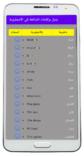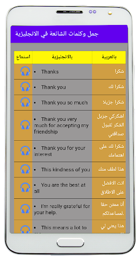 من جانب أخر التطبيق جمل وكلمات الشائعة في الانجليزية
