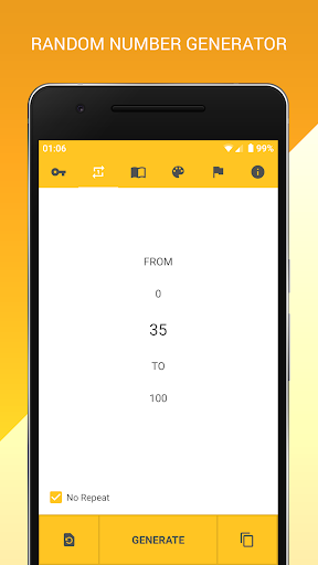 Enter positive and/or negative numbers in the "from" and "to" fields. Now, by clicking "Generate", you will get a random number in the given range. The "No Repeat" function eliminates duplicate numbers.